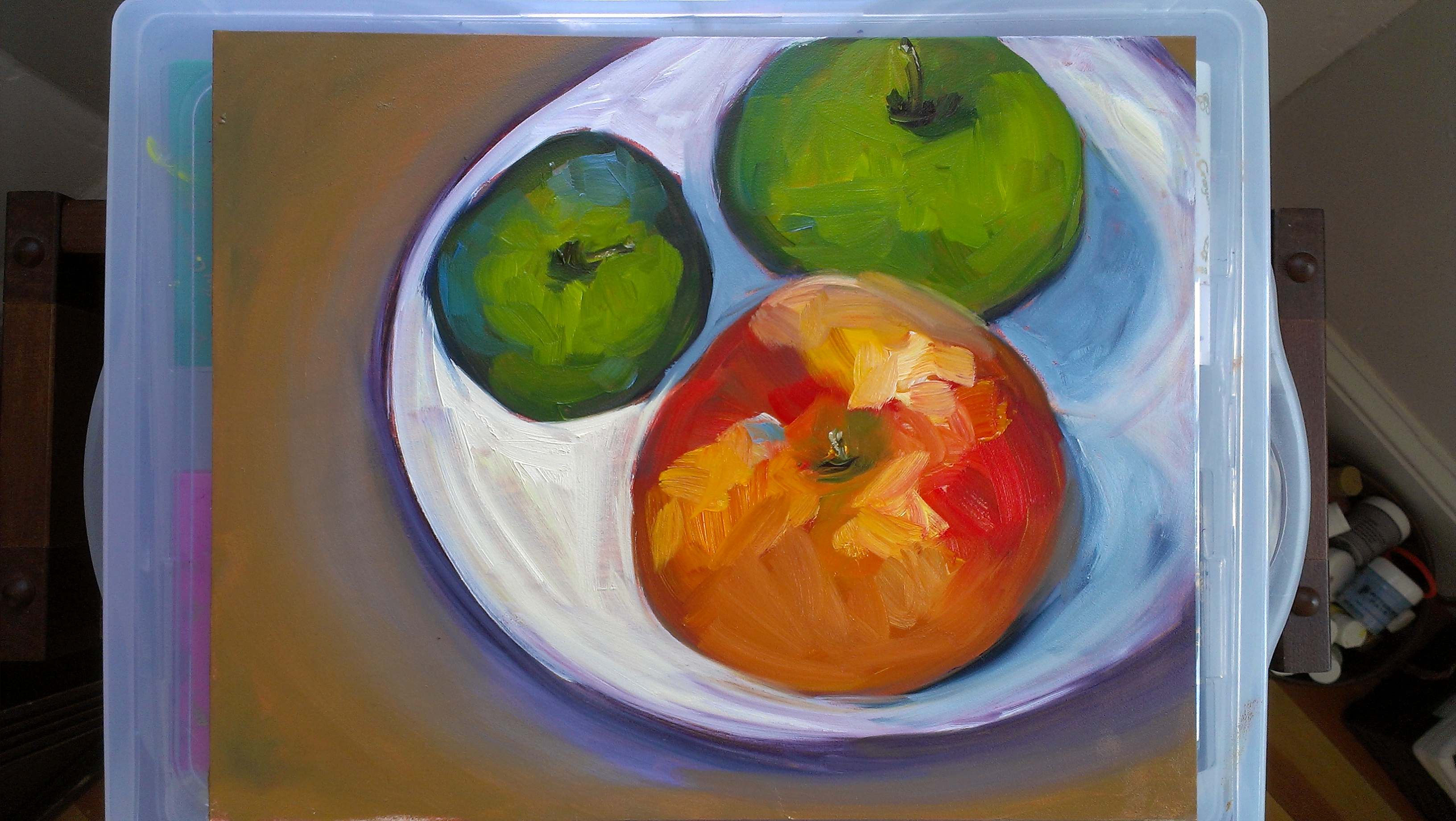 I was inspired today by Cezanne’s apples. Recently I went to the Metropolitan Museum of Art in NYC, and also the MFA in Boston (specifically to see the Bathers on loan from PA). The impressionists are an inspiration. My favorite paintings I saw at the Met: Van Gogh’s Shoes, Cezanne’s Apples and Pears, Camille Pissarro. My favorites in Boston: hands down John Singer Sargent.